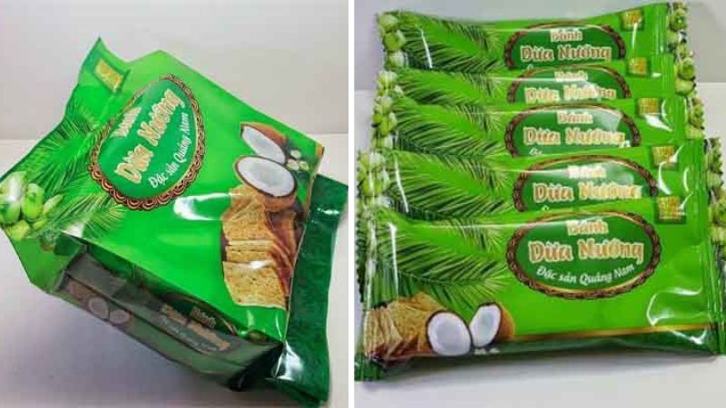 Bánh dừa nướng Quảng Nam là một trong những món ăn vặt nổi tiếng mà du khách không thể bỏ qua. Với hương thơm quyến rũ và vị giòn rụm, bánh dừa nướng thu hút rất nhiều tín đồ ẩm thực. Giá bánh thường dao động từ 25.000 đến 40.000 VNĐ/gói, rất hợp lý để bạn có thể thưởng thức nhiều lần.