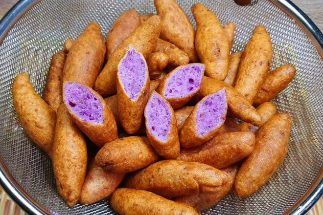 Cuối cùng, bạn chỉ cần chiên bánh trong ngập dầu cho đến khi vàng giòn. Bánh khoai mỡ lắc phô mai giòn rụm sẽ là món ăn vặt lý tưởng để thưởng thức cùng bạn bè và gia đình. Khi cắn một miếng, bạn sẽ cảm nhận được vị béo ngậy từ phô mai hòa quyện với sự mềm mịn của khoai mỡ, thật tuyệt vời!