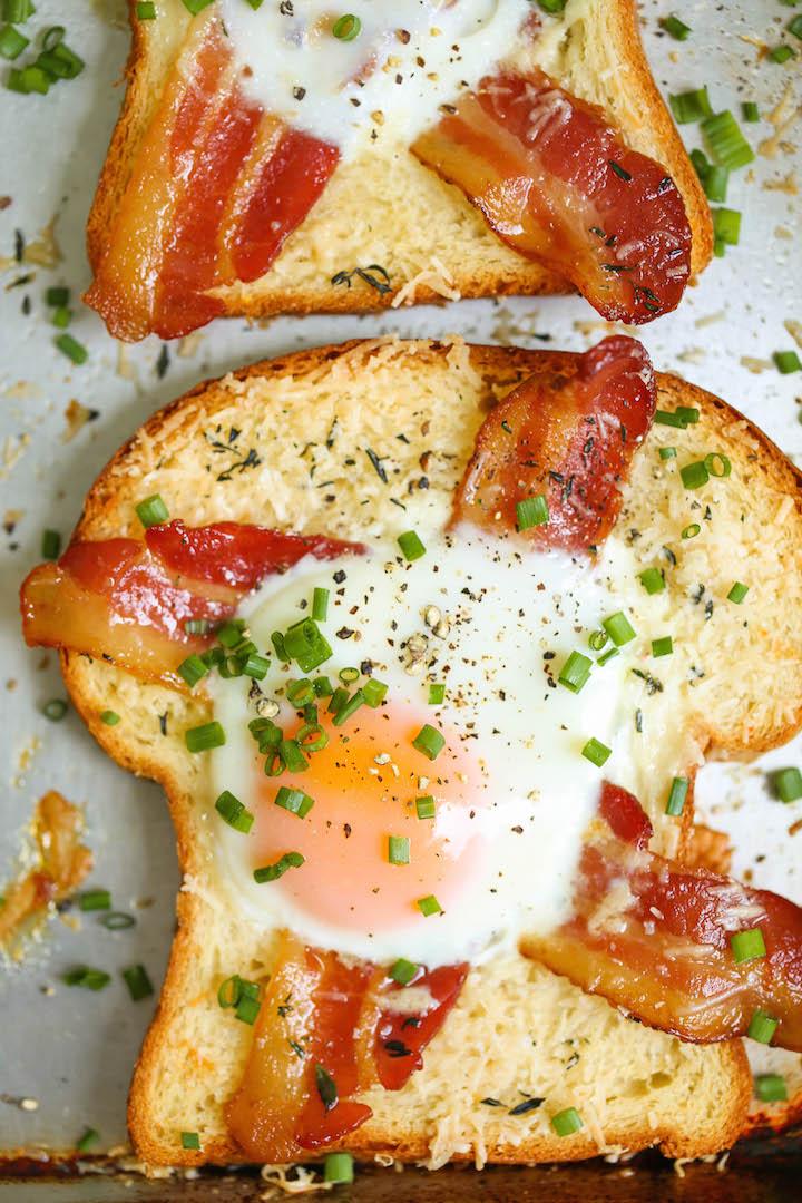 Cách làm thật đơn giản: đầu tiên, bạn chỉ cần nướng hai nửa bánh mì, sau đó cho vào đó những miếng thịt xông khói giòn rụm và phủ lớp trứng ấm nóng bên trên. Bạn có thể thêm chút cà chua, dưa leo hoặc ớt nếu muốn. Hương vị sẽ càng trở nên hấp dẫn hơn khi thêm một ít xì dầu.