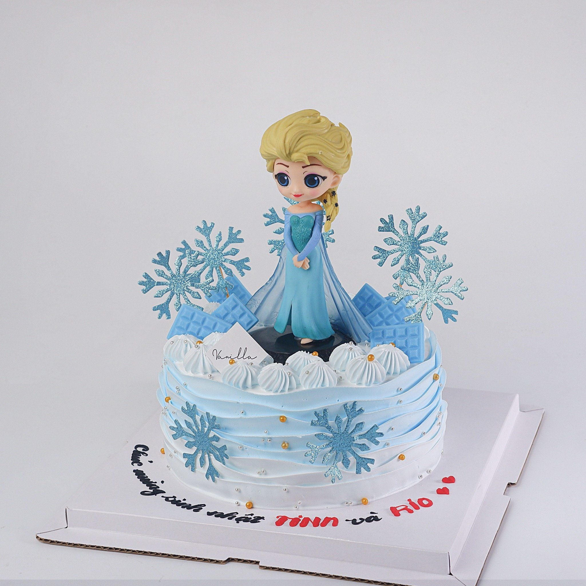 Để trang trí cho chiếc bánh thêm phần lung linh, bạn có thể chọn set búp bê Elsa và Anna cỡ 3D với màu sắc tươi sáng. Những chi tiết như hoa tuyết hay nhân vật Olaf có thể được thêm vào theo yêu cầu, tạo nên một bữa tiệc sinh nhật chẳng thể nào quên đối với các bé.