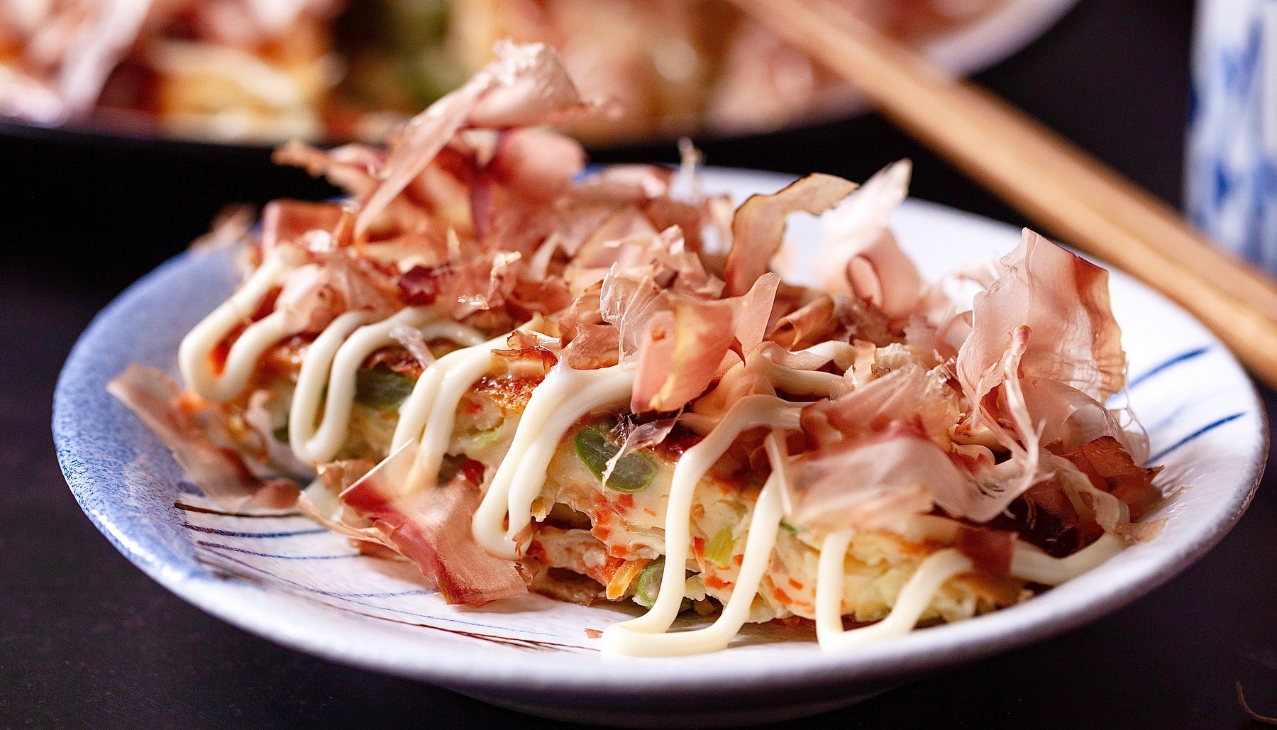 Cuối cùng, bánh chín bạn cho ra đĩa, phết sốt Okonomiyaki đặc trưng, thêm mayonnaise, rắc cá bào và rong biển khô lên trên để tăng hương vị. Món bánh xèo Nhật này rất thơm ngon, đậm đà và có thể ăn kèm với trà xanh hoặc súp miso để cảm nhận trọn vẹn hương vị Nhật Bản. Đây là món ăn đường phố hấp dẫn, dễ làm và rất thích hợp để bạn trổ tài ngay tại nhà.