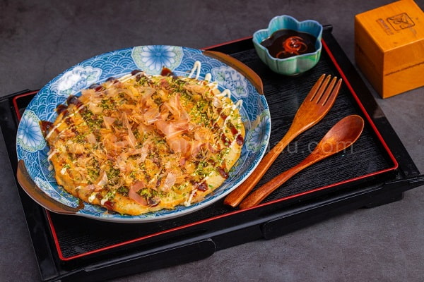 Bánh xèo Okonomiyaki, hay còn gọi là bánh xèo Nhật Bản, là một món ăn rất đặc trưng và hấp dẫn của Nhật. Tên gọi Okonomiyaki xuất phát từ hai từ tiếng Nhật: “okonomi” nghĩa là tùy thích và “yaki” nghĩa là nướng, thể hiện sự linh hoạt trong cách chế biến món ăn này. Bạn có thể tùy ý chọn nguyên liệu như bắp cải, thịt ba chỉ, hải sản, trứng, rồi trộn cùng bột mì để tạo nên lớp vỏ bánh vàng giòn nhưng bên trong vẫn mềm ẩm.