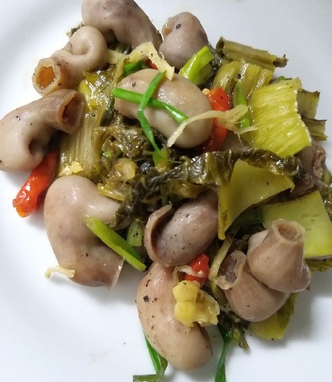 Cuối cùng, bạn thêm cải chua vào, nêm nếm với gia vị muối, nước mắm, đường, và cùng với hành lá, xào đều cho đến khi các nguyên liệu hòa quyện. Món ăn hoàn thành sẽ có vị giòn ngon của cải chua và độ dai ngọt của bao tử cá, thật sự kích thích vị giác và khiến ai cũng phải mê mẩn!