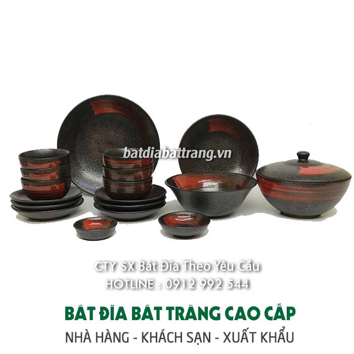 Bát đĩa cao cấp với bộ sản phẩm từ Bát Tràng thường có màu sắc đen trắng sang trọng. Sản phẩm này không chứa chì, chịu lực tốt và thân thiện với môi trường. Nhiều bộ bát đĩa đẹp như Splendid Umber hay Evening Majesty được nhập khẩu từ Nhật Bản cũng là lựa chọn lý tưởng cho không gian ẩm thực chuyên nghiệp.
