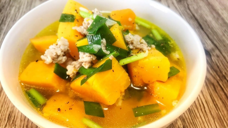 Khi thịt đã chín, bạn đổ bí đỏ đã gọt vỏ, cắt miếng nhỏ vào. Thêm nước cùng với 1 muỗng canh nước mắm, hầm cho bí mềm. Nước canh sẽ mang lại vị ngọt tự nhiên từ bí và thịt. Cuối cùng, hãy rắc thêm chút tiêu xay và hành lá cắt nhỏ trước khi tắt bếp. Món canh này không chỉ thơm ngon mà còn rất bổ dưỡng!