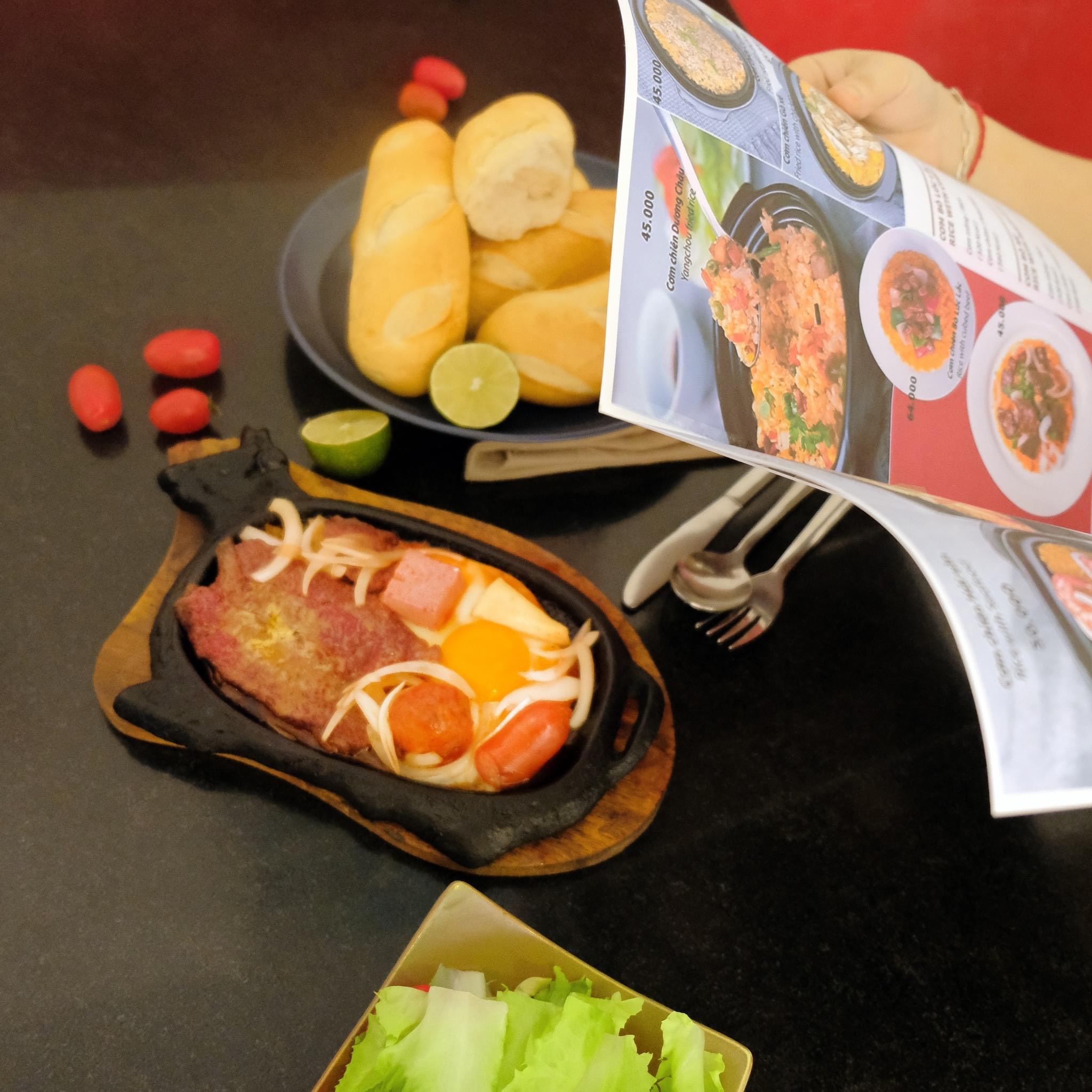 Ngoài việc thưởng thức bò bít tết với sốt hành tây, thực khách có thể đổi vị với một đĩa mì ý sốt bò bằm hay chiếc bánh khoai tây giòn rụm. Món này thật sự hoàn hảo để làm dịu đi vị béo ngậy của bò, trong khi một chút salad trộn cũng giúp cân bằng vị giác. Tất cả mang đến một trải nghiệm ẩm thực trọn vẹn và thú vị!