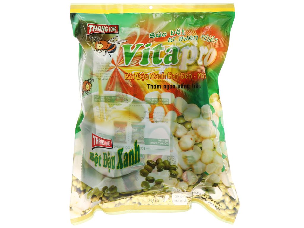 Ngoài đậu xanh và hạt sen, bột còn được bổ sung bột kem, đường cát trắng và mantodextrin, giúp nâng cao khả năng hòa tan và gia tăng độ ngọt nhẹ nhàng. Với hàm lượng calo khoảng 90-100 kcal cho mỗi gói 30g, sản phẩm là lựa chọn lý tưởng cho những ai muốn bổ sung năng lượng mà không lo về cân nặng.