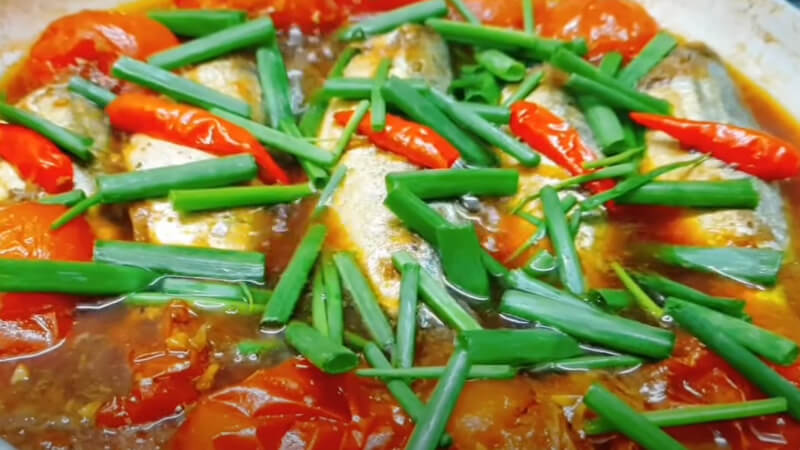 Cuối cùng, rắc thêm hành lá và ớt lên trên để tăng thêm sắc màu và hương vị. Món cá bạc má kho cà chua sẽ khiến cả nhà bạn thích mê, vừa đơn giản mà lại rất đậm đà. Chúc bạn thành công!