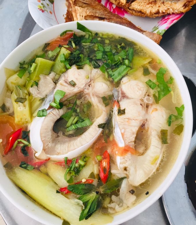 Khi cá chín tới, món canh chua sẽ có màu nước hồng đỏ từ cà chua, quyện với vị chua chua nhẹ nhàng của me và hương thơm từ tỏi phi. Đừng quên rắc thêm rau om, ngò gai và thưởng thức với cơm nóng nhé! Món canh chua này không chỉ bổ dưỡng mà còn mang hương vị đặc trưng của ẩm thực miền Nam.