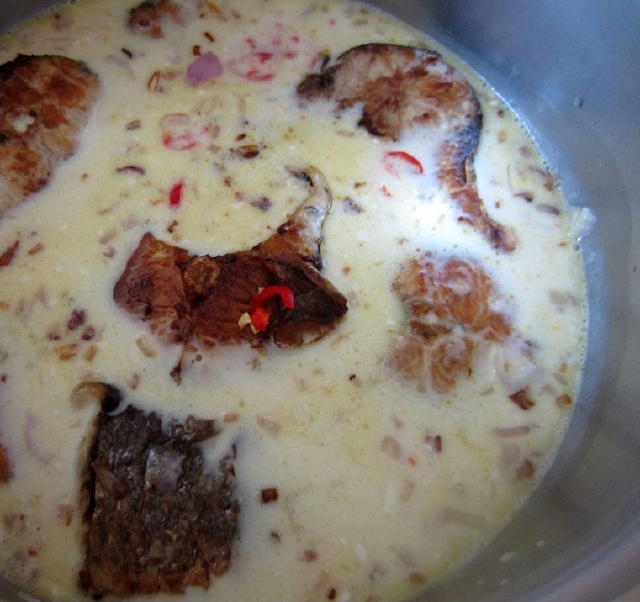 Khi hoàn thành, món ăn này có thể được thưởng thức cùng với cơm trắng và rau sống. Hương vị đậm đà kết hợp cùng độ béo ngậy của nước cốt dừa chắc chắn sẽ khiến cả gia đình bạn thích mê, không thể ngừng ăn!