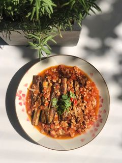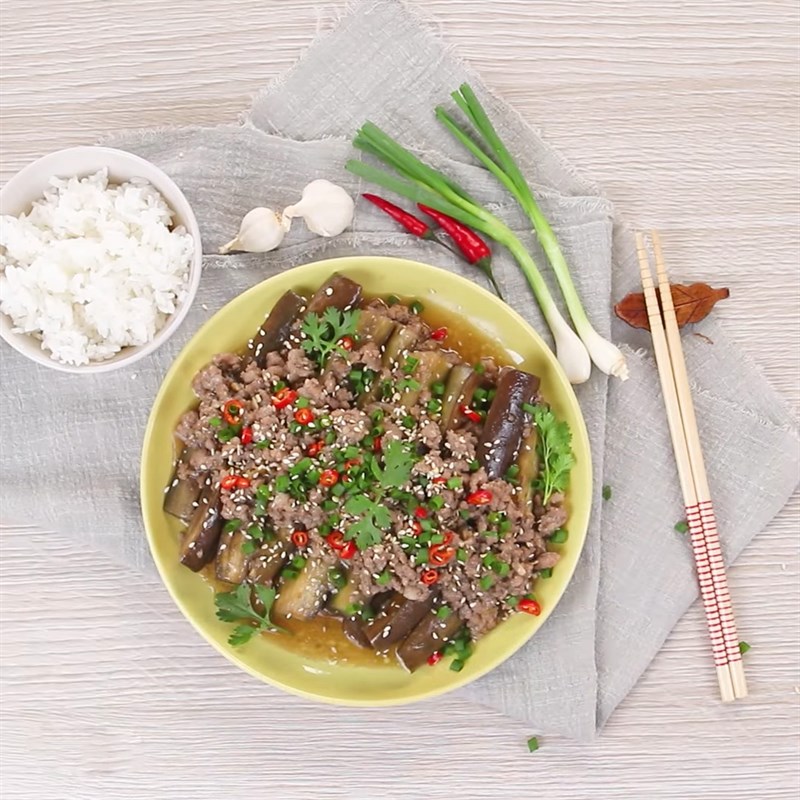 Cà tím sốt thịt bằm là món ăn dân dã nhưng vô cùng hấp dẫn, dễ làm và đặc biệt đưa cơm. Nguyên liệu chính gồm cà tím, thịt bằm, tỏi, gừng và một số gia vị đơn giản. Để làm món này, bạn cắt cà tím thành những khúc dài khoảng 6cm, ngâm trong nước muối để khử đi độ đắng sau đó để ráo. Hành lá, tỏi và ớt băm nhỏ sẽ là các thành phần không thể thiếu trong việc gia tăng hương vị.