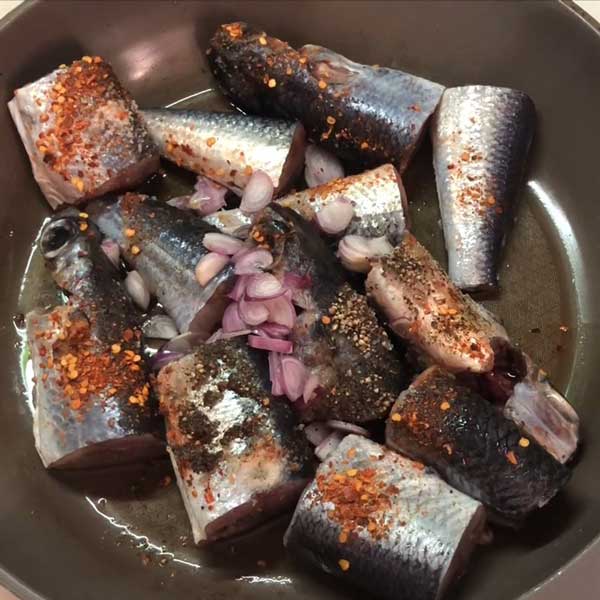 Cá chuồn kho tiêu là món ăn mang hương vị đậm đà, dễ thực hiện nhưng lại cực kỳ hấp dẫn. Để có được món cá ngon, trước hết bạn cần rửa sạch cá chuồn và để ráo nước. Sau đó, ướp cá với các gia vị gồm 2.5 muỗng cà phê bột ngọt, 1/2 muỗng cà phê muối, 1/2 muỗng cà phê tiêu, 3 muỗng cà phê ớt bột, 2 muỗng cà phê nước mắm và hành tím cắt lát.