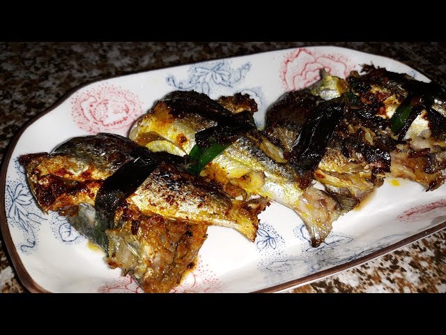 Sau khi ướp, cá được nhồi hỗn hợp nghệ, ớt và các gia vị vào phần ruột, sau đó dùng lá sả cột chặt lại, giúp gia vị ngấm đều. Điều đặc biệt là cá được nướng trên lá chuối, không chỉ giữ được độ ẩm mà còn có hương thơm quyến rũ.