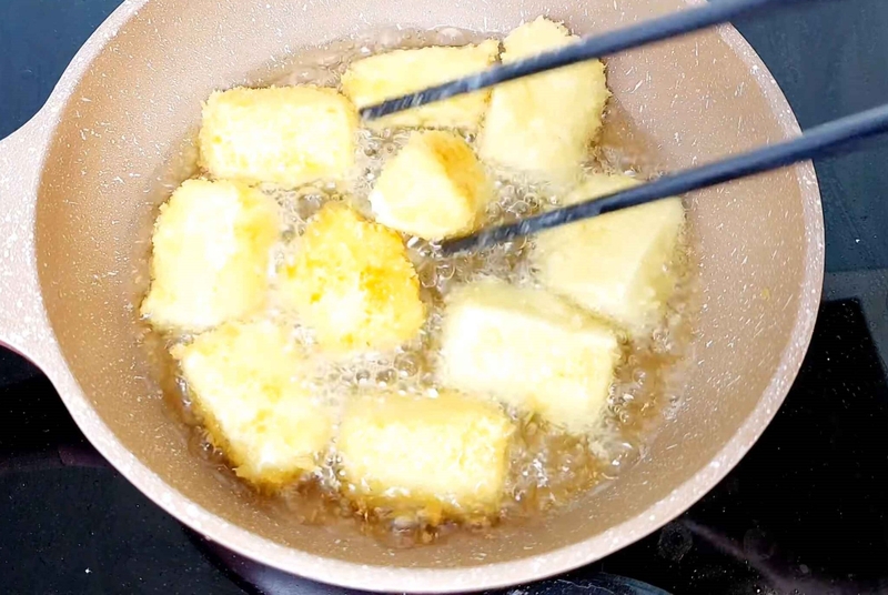 Chiên đậu hũ non đạt độ giòn hấp dẫn