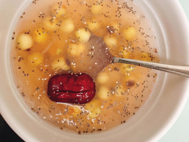 Sau khi hai nguyên liệu đã sẵn sàng, bạn chỉ cần chưng yến và táo đỏ trong 10 phút. Đừng quên thêm hạt chia vào nồi chưng, giúp món ăn trở nên sánh mịn và béo bùi hơn. Hạt chia không chỉ ngon mà còn rất bổ dưỡng, giàu Omega-3, giúp cải thiện sức khỏe tim mạch và hỗ trợ giảm cholesterol.