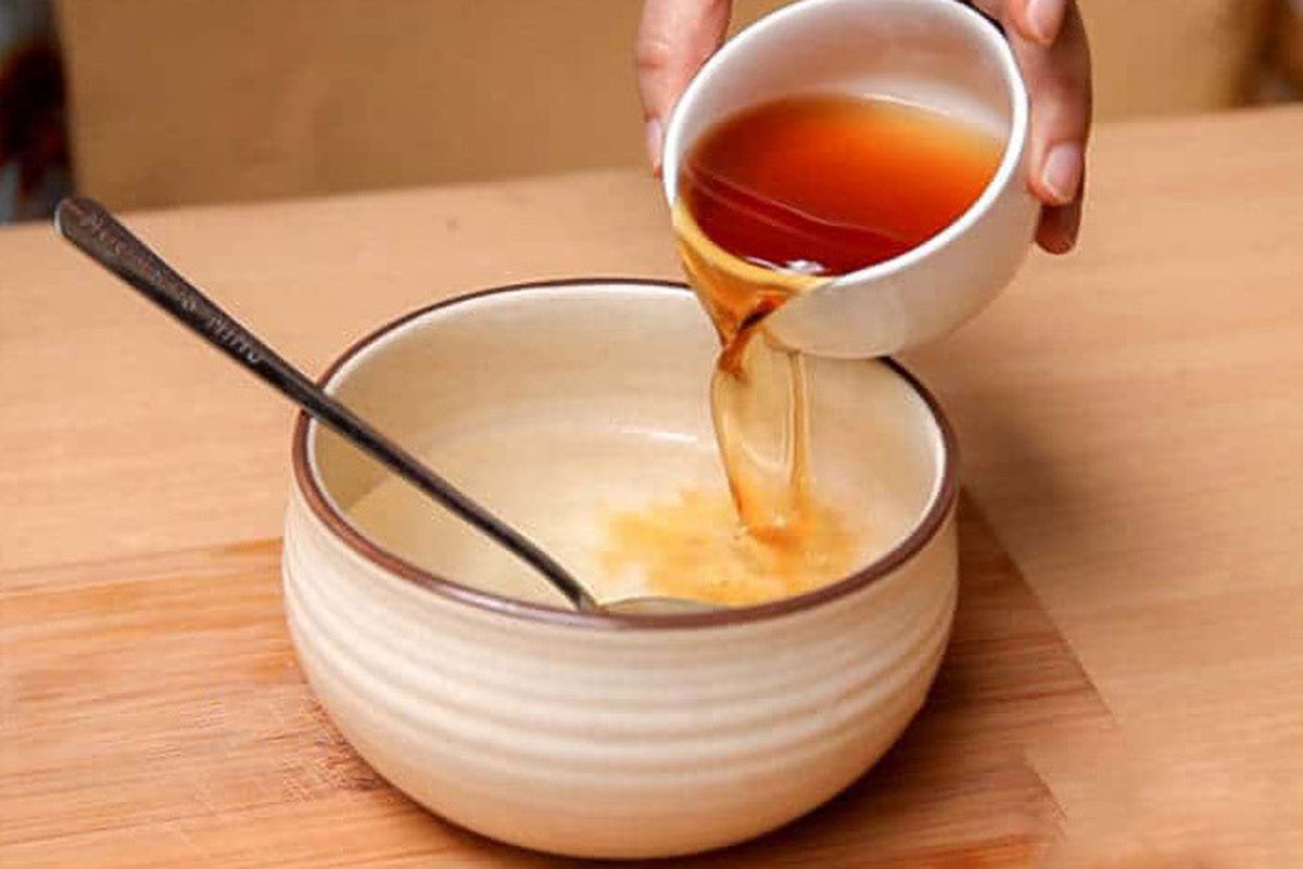 Tiếp theo, bạn có thể chọn cách hãm tiết canh ngan bằng nước mắm. Chỉ cần pha 1 thìa cà phê nước mắm với khoảng 1,5 đến 2 thìa nước sôi để nguội là đủ. Hỗn hợp này sẽ giúp giữ được hương vị đặc trưng và giúp tiết canh có độ ngậy, béo. Đặc biệt, nếu bạn muốn tăng thêm vị chua, có thể vắt nửa quả chanh vào bát.