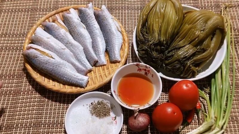 Cách làm rất đơn giản. Đầu tiên, phi thơm hành tím rồi cho cải chua vào xào cùng một muỗng đường để làm dậy hương vị. Tiếp đó, thêm cà chua và ớt vào xào chung, rồi trút hỗn hợp ra đĩa. Tiếp theo, xếp cá vào nồi, cho hỗn hợp cải chua lên trên và thêm nước để cá không bị khô.