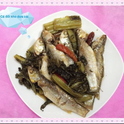 Trong quá trình kho, thêm chút hành tím băm nhỏ, ớt sừng, và hành lá để món ăn thêm phần hấp dẫn. Khi hoàn thành, bạn sẽ có một món cá đối kho dưa cải chua vô cùng đậm đà, dậy mùi hương của cá và dưa chua, ăn cùng với cơm trắng thì thật tuyệt vời.