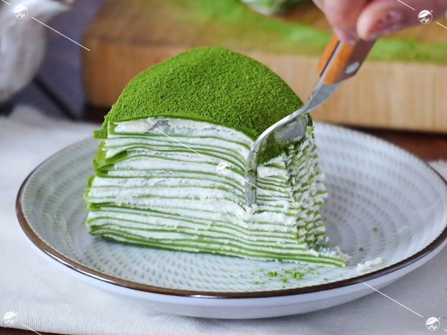 Sau khi đã có nhiều lớp bánh crepe, hãy làm kem matcha bằng cách đánh cream cheese với đường và bột trà xanh cho thật mượt mà. Cuối cùng, bạn chỉ cần cuộn bánh cùng với kem matcha và thưởng thức thành phẩm thơm ngon, màu sắc hấp dẫn. Bánh crepe matcha sẽ là món tráng miệng tuyệt vời cho gia đình bạn trong những ngày lễ.