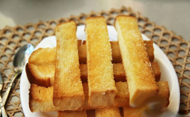 Khi nồi đã nóng, hãy cắt bánh mì thành từng lát vừa ăn, sau đó phết đều bơ lên mặt bánh. Rắc đường lên trên và cho bánh vào nồi, nướng khoảng 5 phút là hoàn tất. Nếu bạn muốn bánh có độ giòn ngon nhất, hãy thử chiên bằng chảo. Chỉ cần cho 1 muỗng canh bơ vào chảo, đun nóng, rồi cho bánh vào chiên ở lửa nhỏ, nhớ lật đều để bánh chín vàng giòn cả hai mặt.