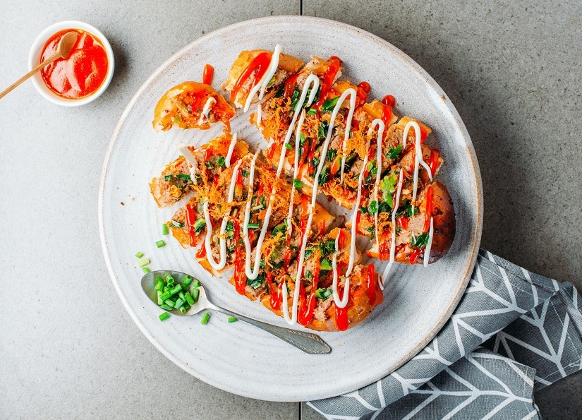 Quá trình nướng cũng rất quan trọng. Nên cho bánh vào lò khoảng 15 phút, hoặc nướng trên bếp than cho tới khi bánh vàng đều cả hai mặt. Khi bón bơ và xốt muối ớt lên bánh, bạn có thể thêm các nguyên liệu như chà bông, xúc xích hay trứng cút để tăng thêm hương vị. Đừng quên thêm chút rau mùi để món ăn thêm phần hấp dẫn.