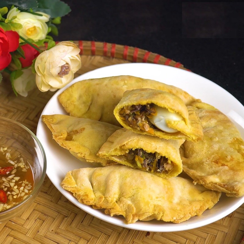 Bột làm vỏ bánh cũng không kém phần quan trọng. Bạn trộn bột mì với bột chiên giòn, sau đó thêm nước từ từ để tạo thành một khối bột mịn. Để bột nghỉ khoảng 1 giờ, rồi cán mỏng, cắt thành từng hình tròn. Cuối cùng, bạn chỉ cần cho nhân vào giữa và tiến hành chiên bánh cho đến khi vỏ bánh vàng giòn, thơm ngon là có thể thưởng thức rồi!