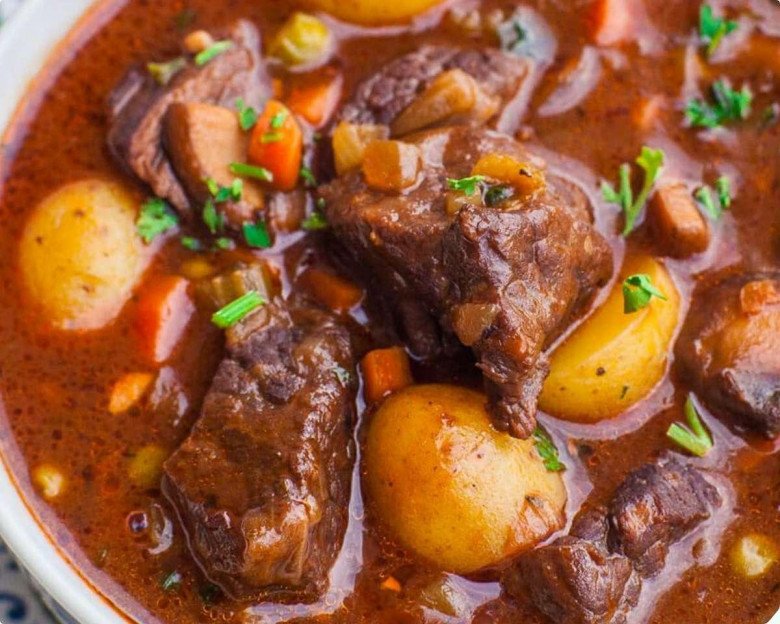 Nồi bò sốt vang sau khi hoàn thành sẽ có màu nâu đỏ quyến rũ, với hương thơm đặc trưng của quế và hoa hồi. Thịt bò mềm mại, ngọt thịt, mang lại cảm giác vừa quen thuộc vừa mới lạ. Món này có thể ăn kèm với bánh mì nóng hổi, phở mềm hoặc cơm trắng dẻo ngon.