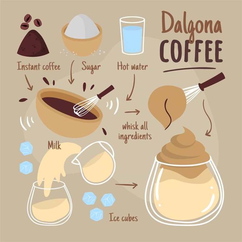 Cà phê bọt biển, hay còn gọi là cà phê Dalgona, đã trở thành trào lưu yêu thích của nhiều người. Để pha chế món đồ uống này, bạn cần chuẩn bị một số nguyên liệu đơn giản. Tỉ lệ pha chế lý tưởng là 1 cà phê, 1 đường, và 1 nước sôi. Đặc biệt, bạn có thể tùy theo lượng người thưởng thức để điều chỉnh tăng giảm nguyên liệu cho phù hợp.