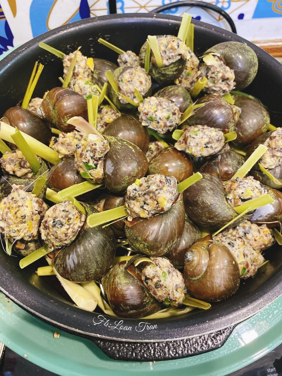 Khi nước đã sôi, bạn lót một lớp lá chuối lên xửng hấp trước khi cho hỗn hợp chả ốc vào. Hỗn hợp này thường bao gồm thịt ốc, giò sống, nấm hương và một số gia vị như tiêu, bột ngọt, nước mắm để tăng thêm hương vị. Đừng quên dùng thìa nén chặt hỗn hợp vào vỏ ốc để khi hấp không bị rơi ra.