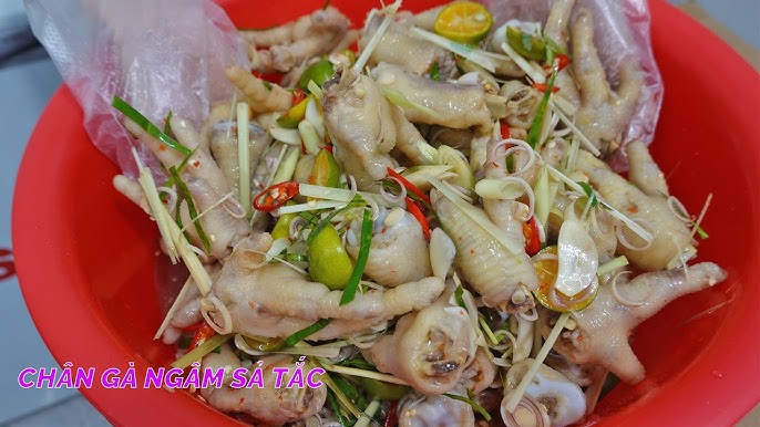 Chân gà ngâm sả tắc là một món ăn đậm vị và hấp dẫn mà nhiều người yêu thích. Để làm món này, đầu tiên bạn cần chọn chân gà tươi, cắt tỉa cho gọn gàng, rồi rửa sạch với nước muối và giấm. Sau đó, hãy luộc chân gà cùng với chút muối, gừng và sả trong khoảng 7 phút. Khi chân gà chín, vớt ra và ngay lập tức ngâm trong nước đá để giữ độ giòn ngon.