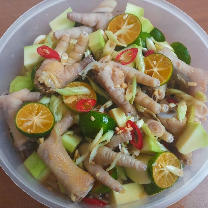 Món chân gà ngâm sả tắc xoài không chỉ mang lại cảm giác ngon miệng mà còn hợp với khẩu vị của nhiều người, từ trẻ em đến người lớn. Khi thưởng thức, bạn sẽ cảm nhận được vị cay nhẹ của ớt, chua của tắc và độ giòn từ chân gà thật sự rất đã miệng!