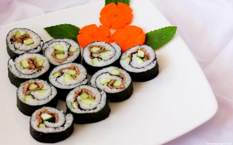 Những món sushi cuộn của Nhật Bản, đặc biệt là Makimono, luôn hấp dẫn và thu hút thực khách. Được làm từ cơm dẻo hòa quyện với các loại nhân tươi ngon, cơm cuộn thường được bọc trong lớp rong biển khô, sau đó cắt thành từng miếng nhỏ vừa ăn. Mỗi miếng sushi không chỉ đẹp mắt mà còn mang đầy hương vị độc đáo.