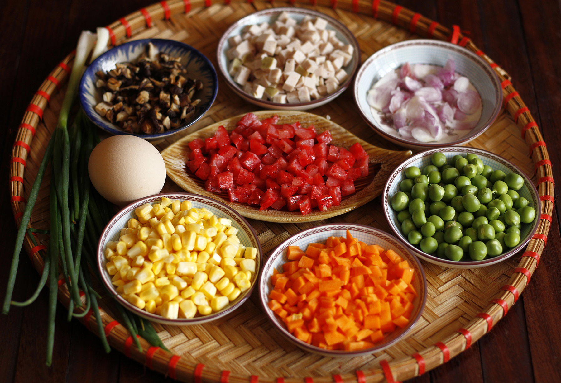 Cơm chiên Dương Châu không chỉ là món ăn ngon mà còn rất đẹp mắt. Để tạo điểm nhấn cho tô cơm chiên, bước đầu tiên là sơ chế nguyên liệu như tôm, lạp xưởng, và các loại rau củ. Bạn có thể tạo hình trái tim từ cà rốt hay dưa hấu để tô điểm, khiến món ăn thêm phần thơm ngon và hấp dẫn hơn.