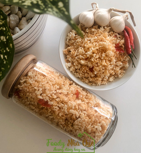 Khi cơm đã nở đều, nổi lên và có màu vàng đẹp, bạn vớt ra để ráo dầu. Lúc này, hãy phi tỏi băm thơm và cho nước mắm vào chảo, sau đó trộn đều với cơm vừa vớt ra. Có thể thêm ớt để món ăn đậm đà hơn. Món cơm khô rang thơm ngon này vô cùng thích hợp để ăn vặt, nhất là những lúc tụ tập bạn bè.