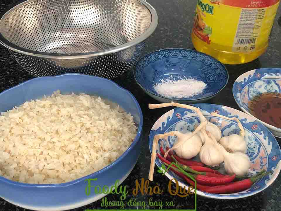 Cơm phơi khô rang nước mắm là món ăn đơn giản nhưng đầy hấp dẫn, đặc biệt với những ai yêu thích hương vị quê hương. Để làm món này cho bốn người, bạn cần chuẩn bị 100 gram cơm phơi khô, 200 ml dầu ăn, 40 ml nước mắm, cùng với 3 tép tỏi và 2 trái ớt. Đây là những nguyên liệu dễ tìm, mang lại hương vị đặc trưng.