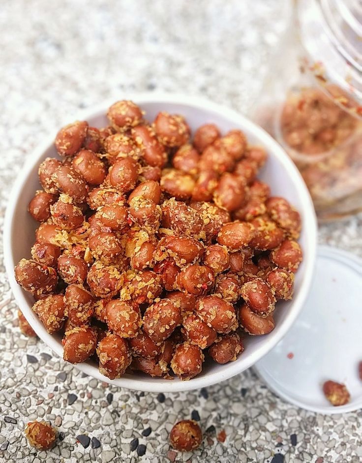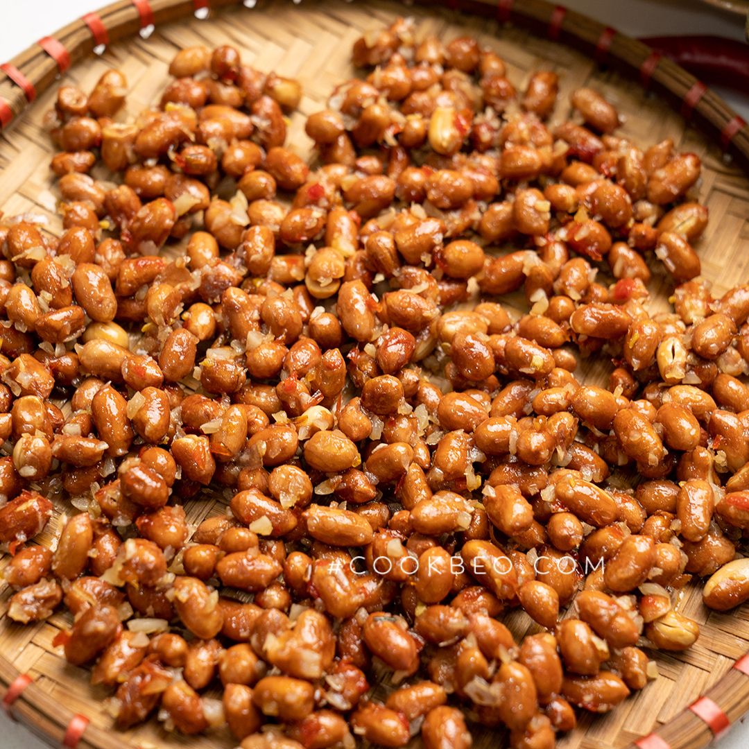 Đầu tiên, hãy rang đậu phộng cùng với một chút muối cho đến khi chín vàng. Đồng thời, bạn có thể phi tỏi với một ít dầu ăn cho đến khi dậy mùi thơm rồi cho ớt và các gia vị khác vào. Sau khi trộn đều hỗn hợp này với đậu phộng, bạn sẽ có ngay một món ăn vặt cực kỳ hấp dẫn để nhâm nhi cùng bạn bè.
