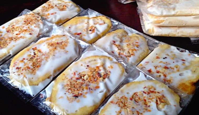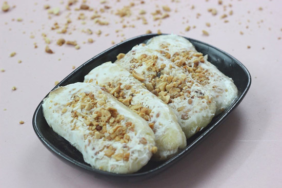 Tiếp theo, bạn trộn nước cốt dừa với sữa đặc, một ít đường và muối trong một chiếc nồi, đun trên lửa nhỏ cho đến khi đường tan hoàn toàn. Sau đó, chỉ cần cho vào khuôn một lớp hỗn hợp nước cốt dừa, rồi xếp một lớp chuối lên, cứ như vậy cho đến khi hết nguyên liệu. Đừng quên rắc thêm một ít đậu phộng rang lên trên để tăng thêm hương vị nhé!