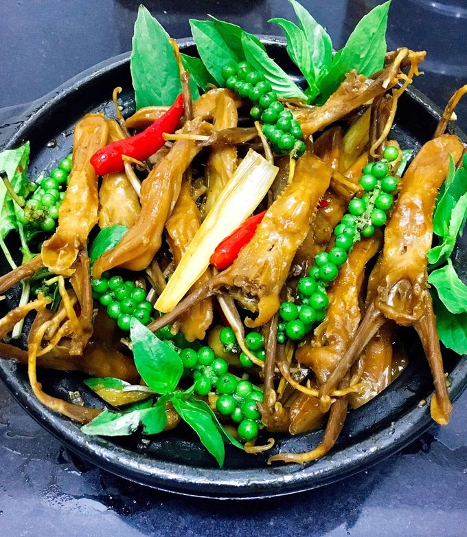 Cuối cùng, để món ăn thêm phần hấp dẫn, bạn hãy trình bày lưỡi vịt ra đĩa, rắc thêm húng quế tươi lên trên và thưởng thức. Món lưỡi vịt sapo này chắc chắn sẽ khiến bạn và gia đình mê mẩn!