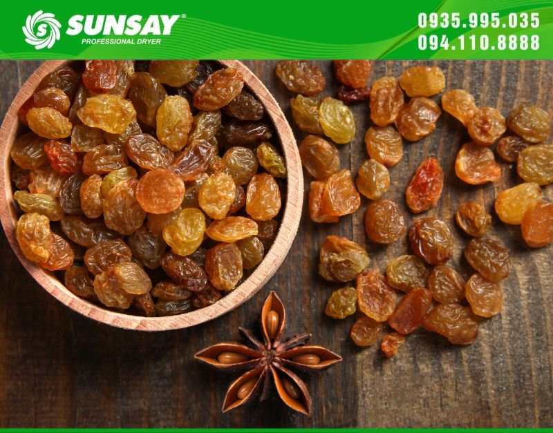 Sau khi hoàn tất công đoạn chuẩn bị, bạn có thể cho nho vào khay sấy. Đối với máy sấy, hãy chọn nhiệt độ khoảng 60°C – 70°C để nho được sấy khô từ từ, giúp giữ lại hương thơm tự nhiên. Sau quá trình sấy, bạn sẽ có những mẻ nho khô ngon lành, có thể bảo quản lâu và dùng trong nhiều món ăn khác nhau.
