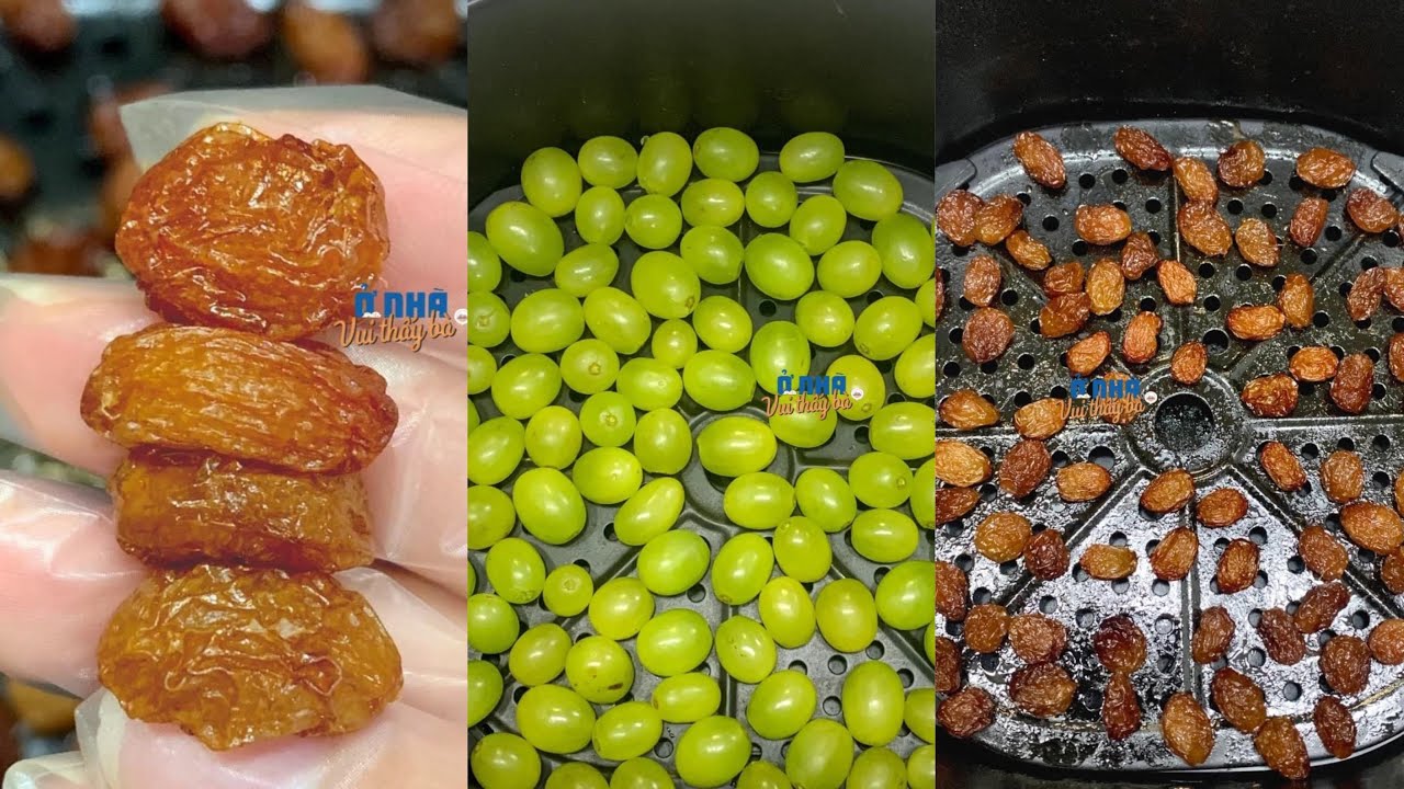 Một cách khác thú vị là dùng nồi chiên không dầu. Chỉ cần đặt nho vào, chọn nhiệt độ 100°C và sấy trong khoảng 5 tiếng. Sau khi hoàn tất, nho khô sẽ có vị ngọt tự nhiên, thơm ngon và bảo quản được lâu. Hãy thử và thưởng thức thành phẩm của mình nhé!