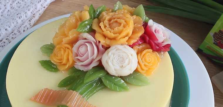 Cuối cùng, bạn có thể sáng tạo với các khuôn silicon để tạo hình hoa. Một khi lớp hoa đã khô, bạn có thể cho thêm các màu sắc từ nước củ dền hay nước lá dứa, khiến món rau câu thêm phần sống động và bắt mắt. Chắc chắn rằng món tráng miệng này sẽ khiến mọi người thích thú khi thưởng thức!
