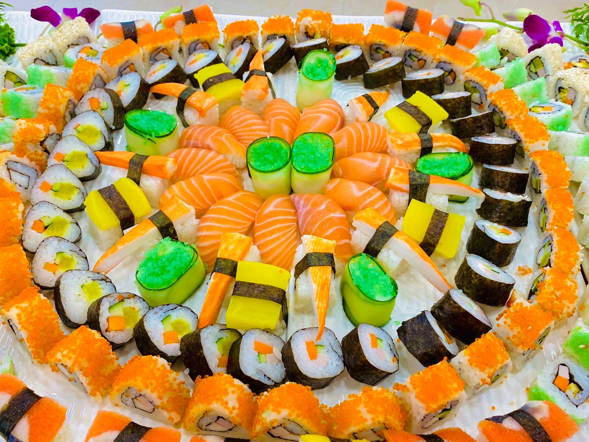 Sushi không chỉ ngon mà còn rất đẹp mắt khi trình bày trên đĩa. Bạn có thể thưởng thức cùng nước tương và wasabi để cảm nhận trọn vẹn hương vị truyền thống Nhật Bản. Tự làm sushi tại nhà cũng là cách thú vị để gắn kết gia đình và bạn bè trong những bữa tiệc nhỏ.