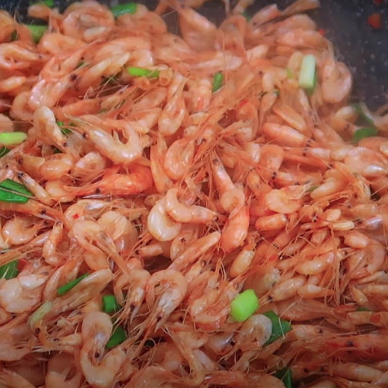 Tiếp theo, bạn rửa lại tép với nước cho sạch. Để chuẩn bị cho món tép rang, hãy làm nóng 2 muỗng canh dầu ăn trên chảo, cho tỏi xắt lát vào phi thơm, sau đó cho tép vào rang. Khi vỏ tép chuyển màu hồng nhạt, bạn cho một chút nước mắm vào và đảo đều để gia vị ngấm vào từng con tép.