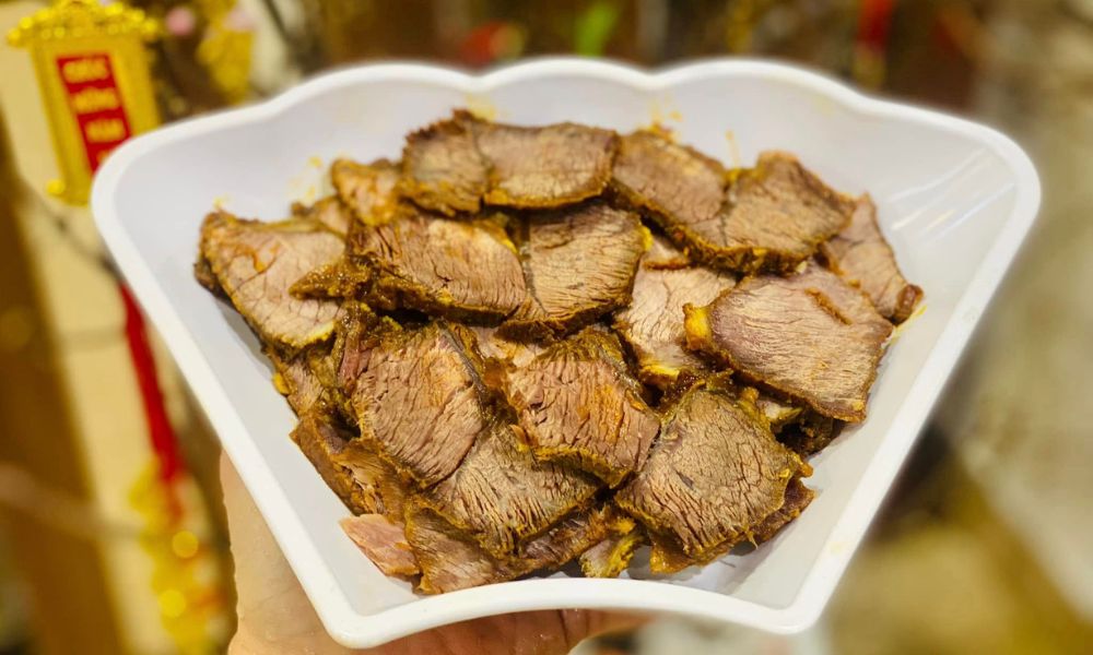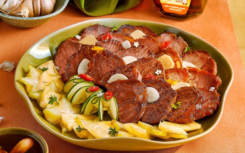 Cuối cùng, kho bắp bò trên lửa nhỏ để thịt chín mềm, thấm đều gia vị. Khi nấu, hương thơm từ các nguyên liệu sẽ lan tỏa, khiến ai cũng phải thèm thuồng. Thịt bò kho mật mía không chỉ ngon mà còn mang đậm hương vị quê hương, thích hợp cho những bữa cơm sum vầy bên gia đình trong dịp lễ Tết.