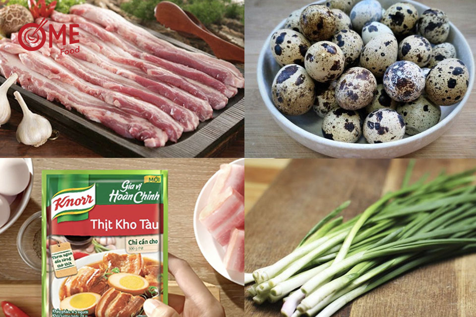 Thịt kho tàu là một món ăn truyền thống gắn liền với những bữa cơm gia đình, đặc biệt trong các dịp lễ Tết. Để làm món này, bạn cần chuẩn bị 300gr thịt ba chỉ, 20-30 quả trứng cút cùng với hành lá và một số gia vị cơ bản như gói gia vị kho tàu, đường, nước mắm và muối.