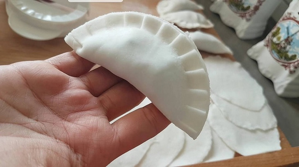 Tiếp theo, bạn nhồi bột cho thật kỹ, sau đó cán mỏng thành những hình tròn nhỏ. Để có vỏ bánh hoàn hảo, cần chú ý đến độ dày của vỏ. Không quá mỏng cũng không quá dày sẽ giúp bánh sủi cảo giữ được nhân bên trong khi nấu.