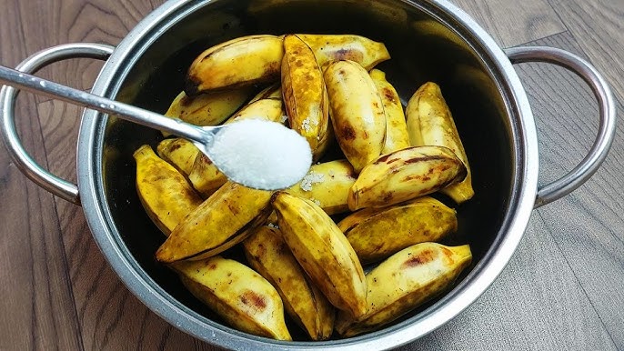 Để chuối Tây chín luộc không bị thâm, một trong những công đoạn quan trọng nhất là bước ướp chuối. Bạn chỉ cần sử dụng 1 thìa cà phê muối, kết hợp với 2 thìa cà phê đường và ướp trong khoảng 5 phút. Sau đó, hãy chuẩn bị một thau nước đá để ngâm chuối ngay sau khi nấu xong, điều này giúp chuối mau nguội và giữ được màu sắc tươi sáng.
