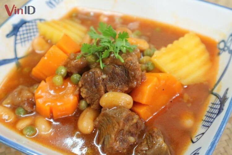 Cuối cùng, bạn thêm khoai tây, cà rốt và hành tây vào nồi, đun sôi rồi hạ lửa cho hết các nguyên liệu mềm và ngấm gia vị. Sau khoảng 30 phút, bạn đã có món bò nấu đậu thơm ngon, hấp dẫn để thưởng thức cùng cơm trắng hay bánh mì. Chắc chắn cả nhà sẽ thích mê món này!