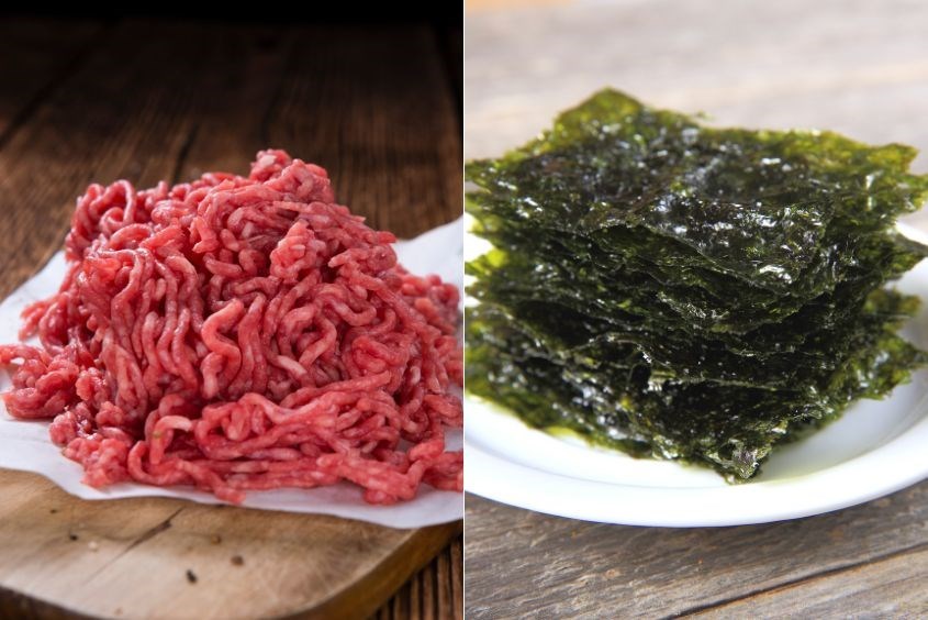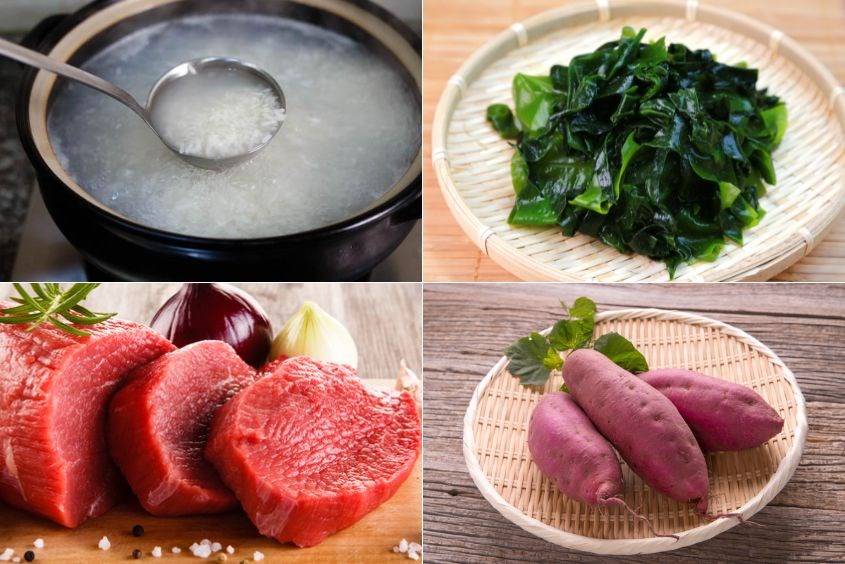 Khi nấu cháo thịt bò rong biển, mẹ chỉ cần chuẩn bị một vài nguyên liệu đơn giản như 100g thịt bò băm và 2g rong biển khô. Thịt bò rất giàu sắt, giúp cải thiện tình trạng thiếu máu, kết hợp với rong biển sẽ tạo thành món cháo bổ dưỡng cho bé. Mẹ có thể cho bé làm quen với thịt bò từ 7 – 8 tháng tuổi, bằng cách xay nhuyễn hoặc ninh lấy nước.