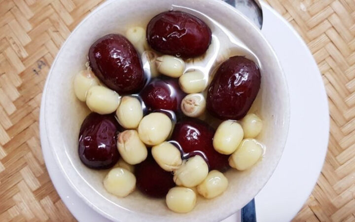 Tiếp theo, để có được hạt sen mềm mà không bị nát, bạn hãy luộc hạt sen riêng với một chút muối cho chín vừa đủ. Sau đó, mới cho vào nồi cùng táo đỏ để nấu chung. Cả hạt sen tươi và hạt sen khô đều có thể sử dụng để làm chè, nhưng khi chọn hạt sen khô, nên chú ý mua loại còn lớp vỏ lụa bên ngoài để đảm bảo chất lượng.
